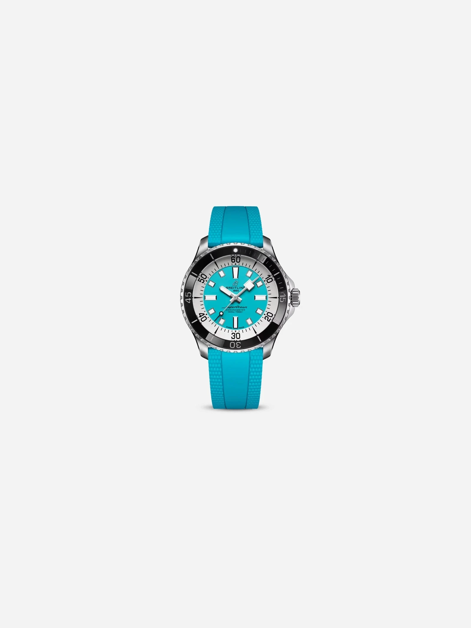 The Breitling Superocean Automatic 44 is a professional dive watch designed for durability and performance. Featuring a 44mm stainless steel case, a bold green dial, and a green rubber strap, it offers outstanding legibility and sporty character. Powered by the Breitling Caliber 17 automatic movement, it provides reliable timekeeping and 300 meters of water resistance, making it suitable for serious diving and everyday adventure.
